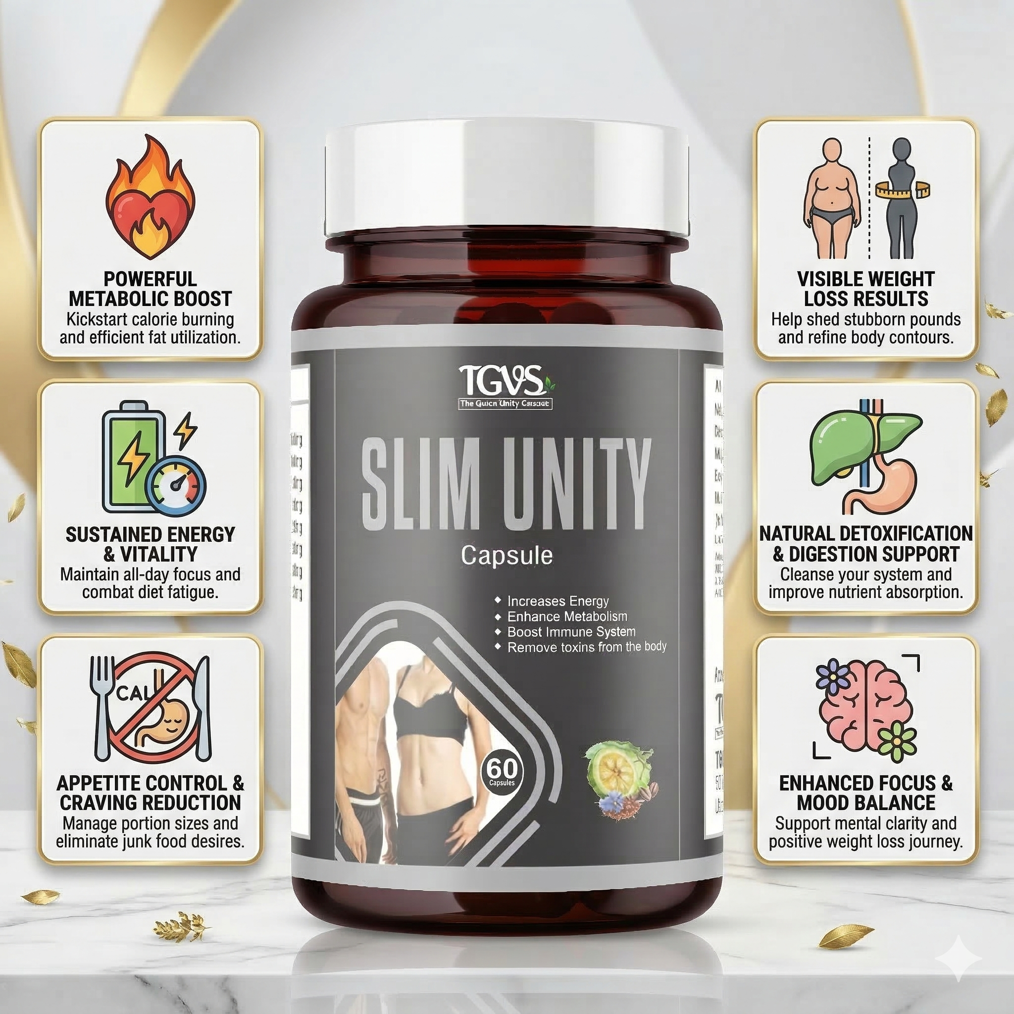 Slim Unity Capsules are a powerful blend of natural ingredients designed to support your weight loss journey while enhancing your overall wellness 🌿. Formulated with carefully selected herbal extracts, these capsules work to boost metabolism, increase energy, and help your body burn fat more efficiently.